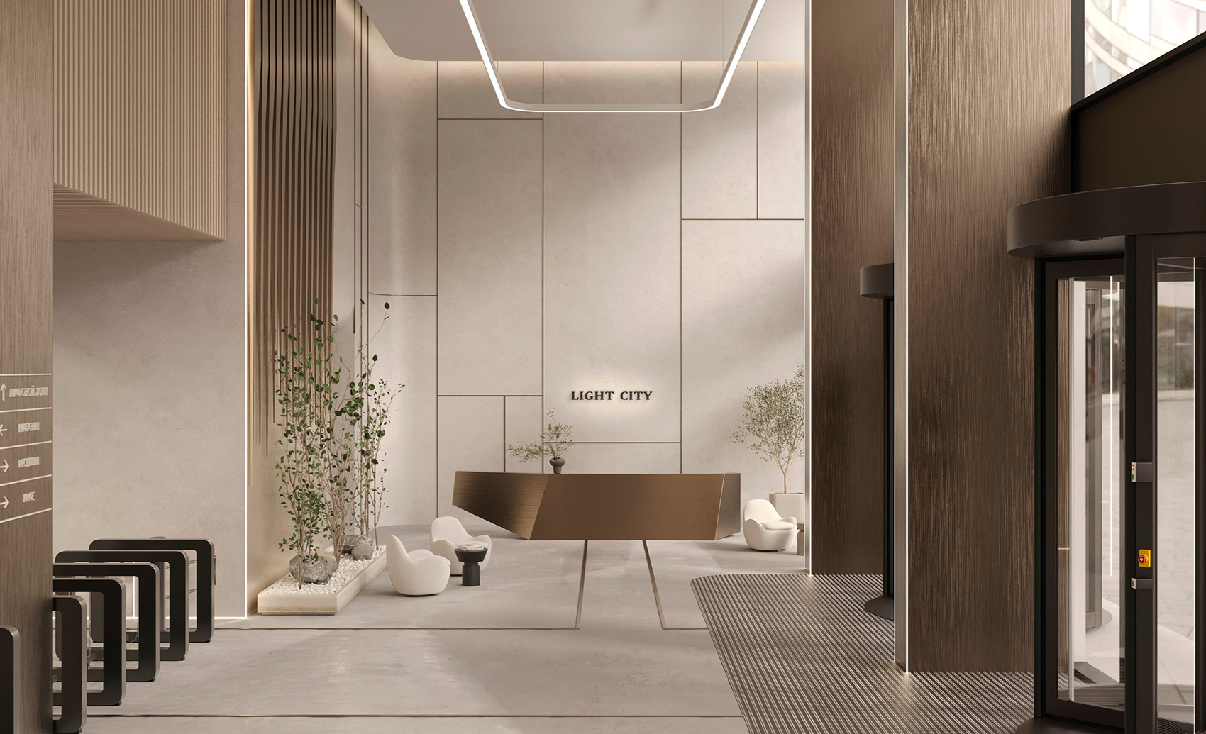 LightCity выделяется современной архитектурой, где стекло и металл создают впечатляющий облик. Фасад с динамичными линиями и изысканный вход подчеркивают премиальный деловой стиль. Прозрачные объемы обеспечивают игру света и отражений, формируя эстетику нового уровня.
